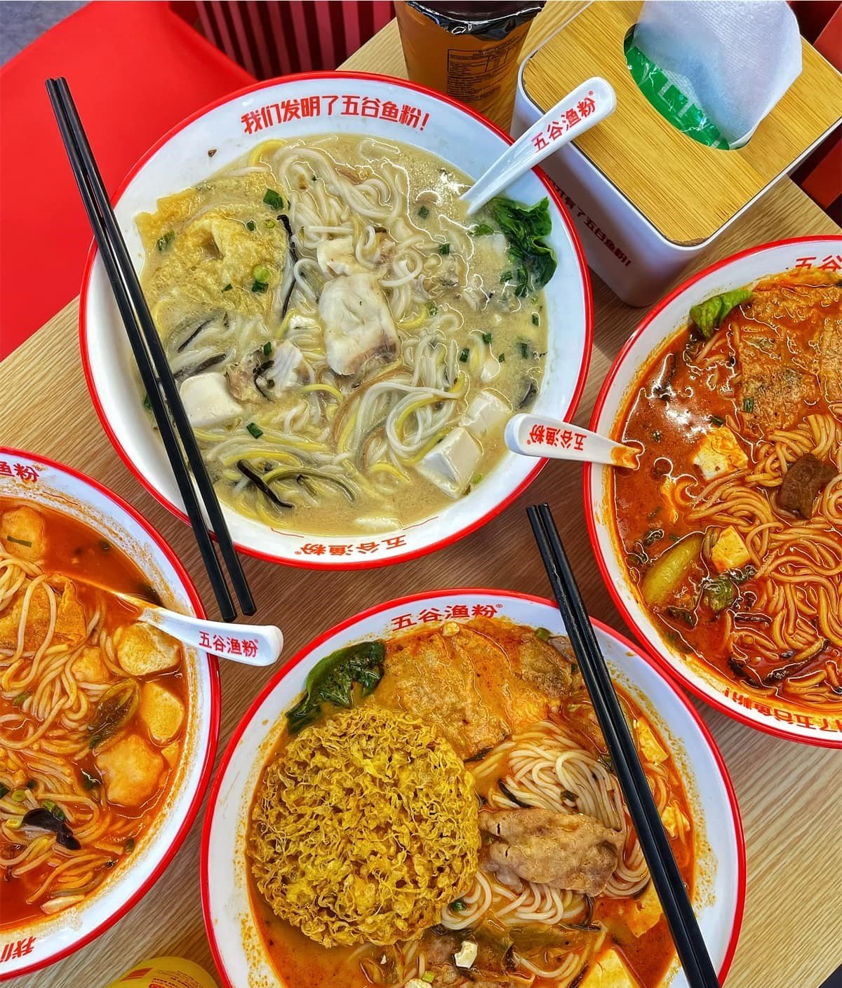 五谷鱼粉 Johor Jaya 分行环境整洁舒适,设计风格独特,仿佛置身中国的面馆。服务人员热情周到,致力于为每一位顾客提供最佳的用餐体验。虽然价格稍高,但分量十足,绝对物超所值。