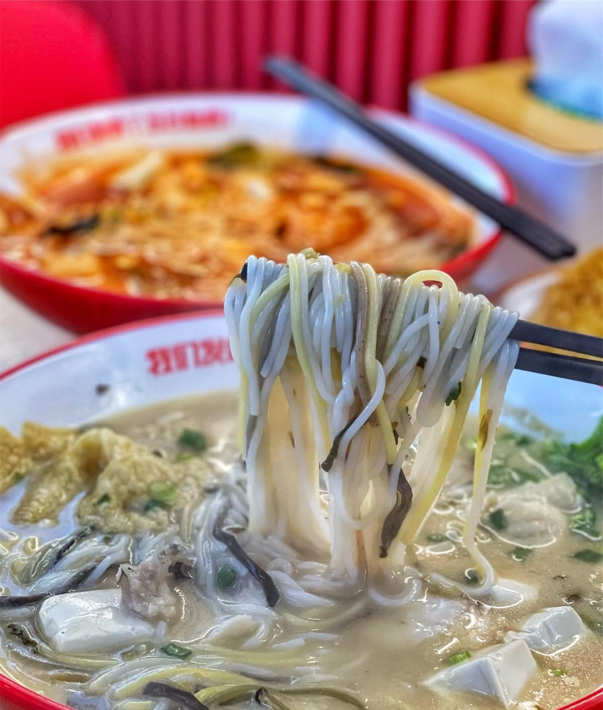 【 五谷渔粉 Johor Jaya 】的面条是由小麦粉、玉米粉、高粱粉、荞麦粉和大米粉制作而成,色泽艳丽,五彩缤纷。每一口面条都吸满了浓郁的汤汁,Q弹有劲,口感和味觉的双重享受。搭配猪肉、鱼片或虾滑,每一种组合都能带给你不同的美味体验。